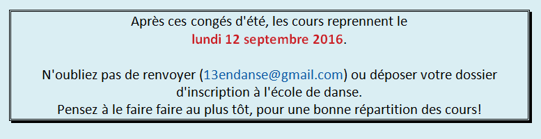 DATE REPRISE DES COURS 2016Clothilde Kieffert3 sept. 20161 min de lecture #danseclassique #modernjazz #rentrée